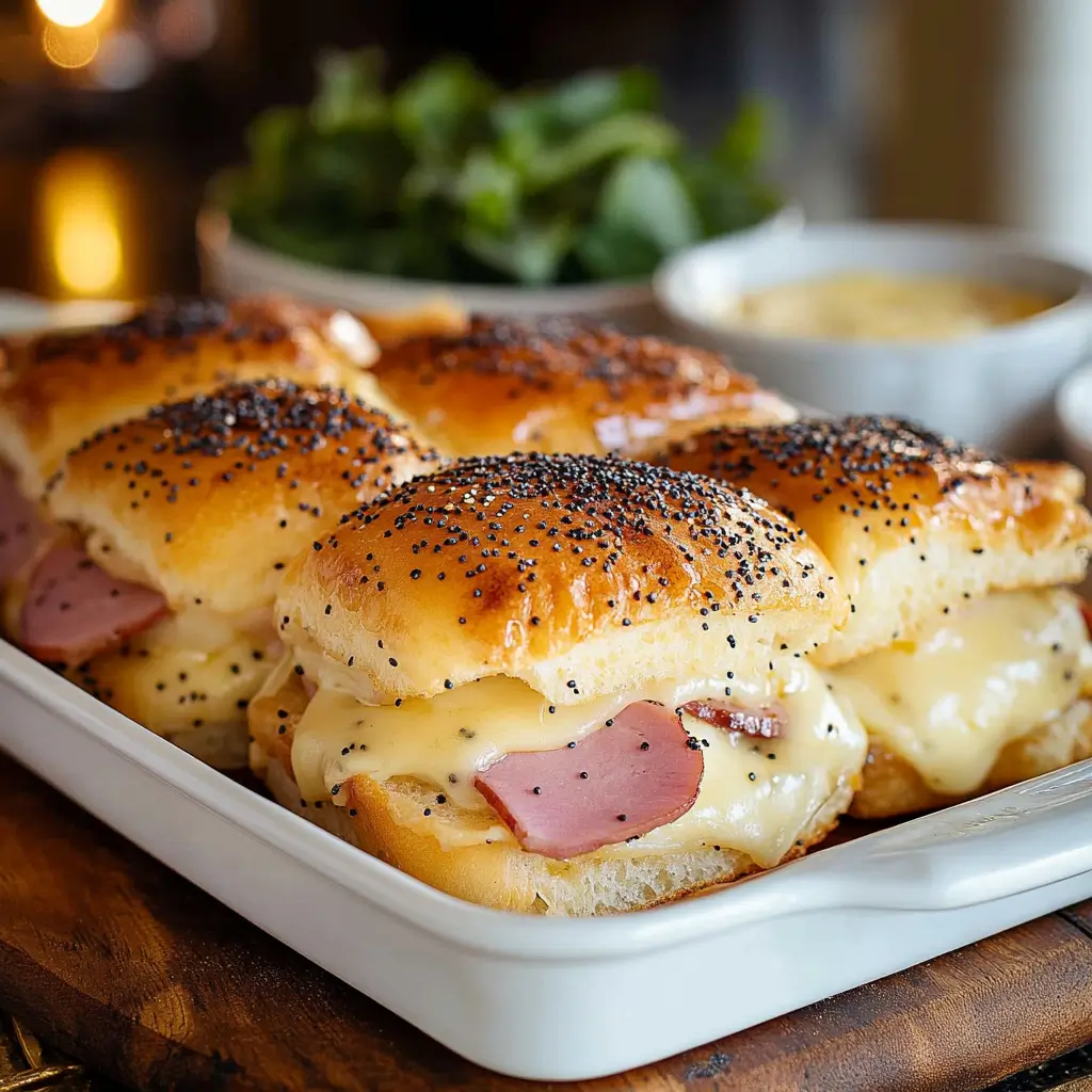 The combination of sweet Hawaiian rolls, savory ham, and creamy Swiss cheese is truly irresistible. Add the buttery topping with Dijon mustard and poppy seeds, and you’ve got a snack that’s bursting with flavor in every bite.